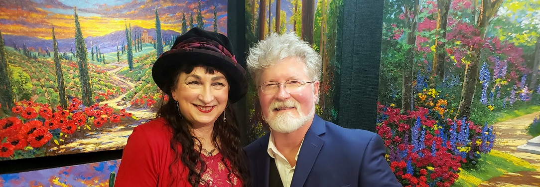 The Artist'south brushes have portrayed and celebrated nature. Returning from a testify in Scottsdale, Arizona, the couple is showcasing new works and doing live painting for the calendar month of April at Artisan Forge Studios.